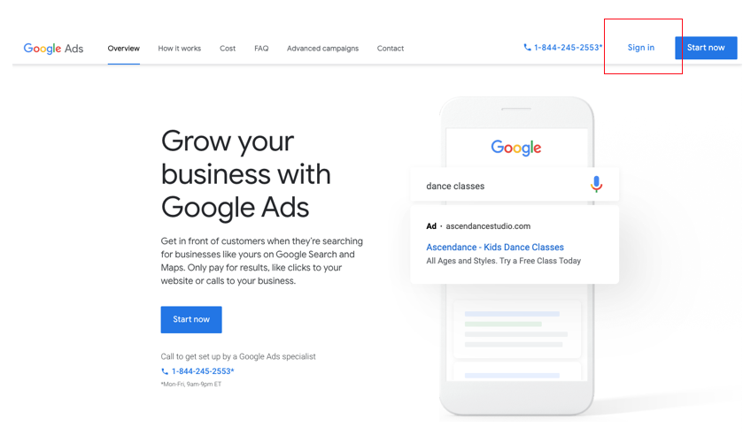 To get started, you'll need to set up a Google Ads account. If you don't already have one, you can create a new account by going to the Google Ads website and clicking on the "Start now" button.